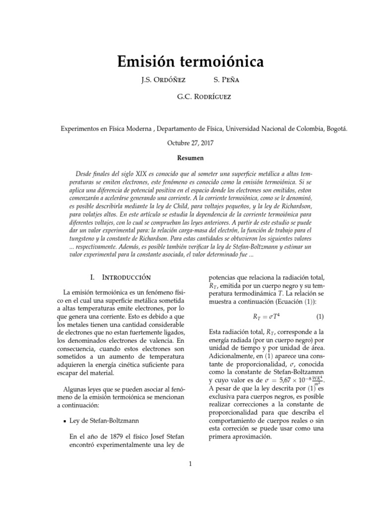 Emisión Termoiónica • Octubre 2017 • Física Moderna
