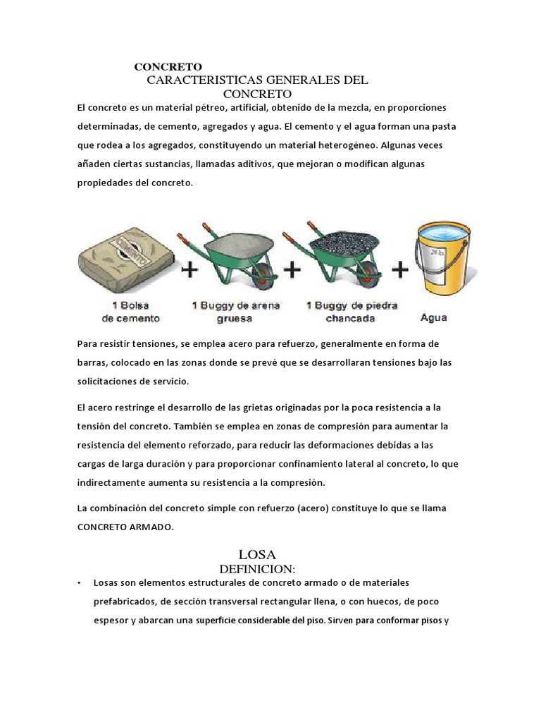 determinadas, de cemento, agregados y agua. El cemento y el agua forman una pasta