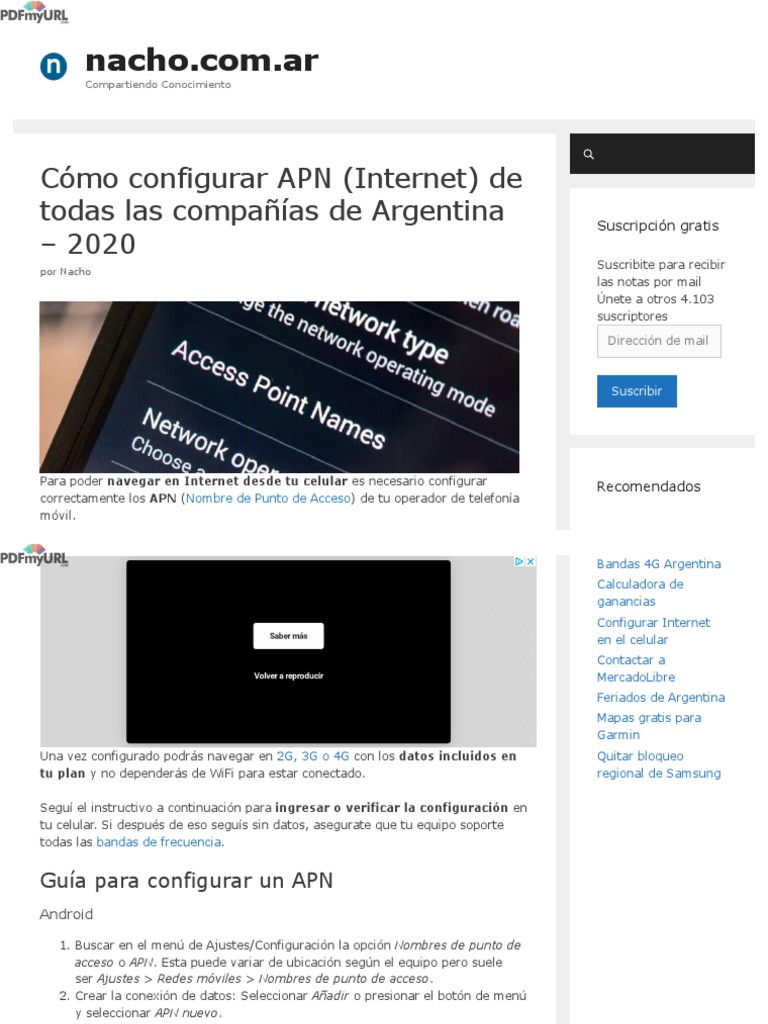 En esta nota solo están los APN de Internet, pensé que ya nadie