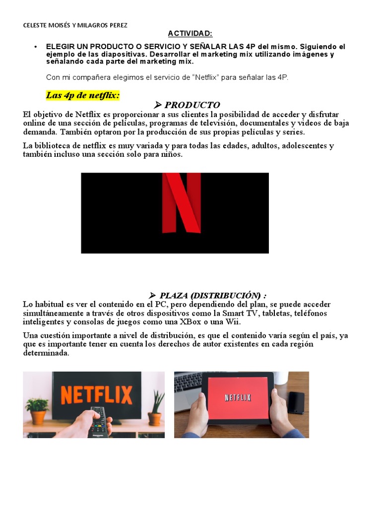Con mi compañera elegimos el servicio de “Netflix” para señalar las 4P.