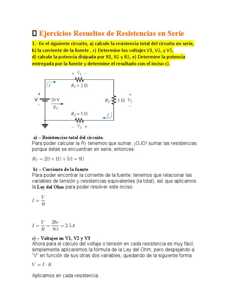 🔸 Ejercicios Resueltos de Resistencias en Serie