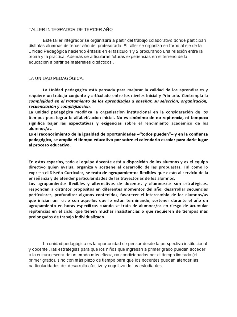-La unidad pedagógica está pensada para mejorar la calidad de los aprendizajes y requiere