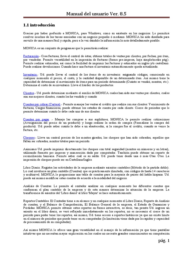 resolver muchos de las tareas asociadas con un negocio pequeño ó mediano. MONICA ha sido diseñada para