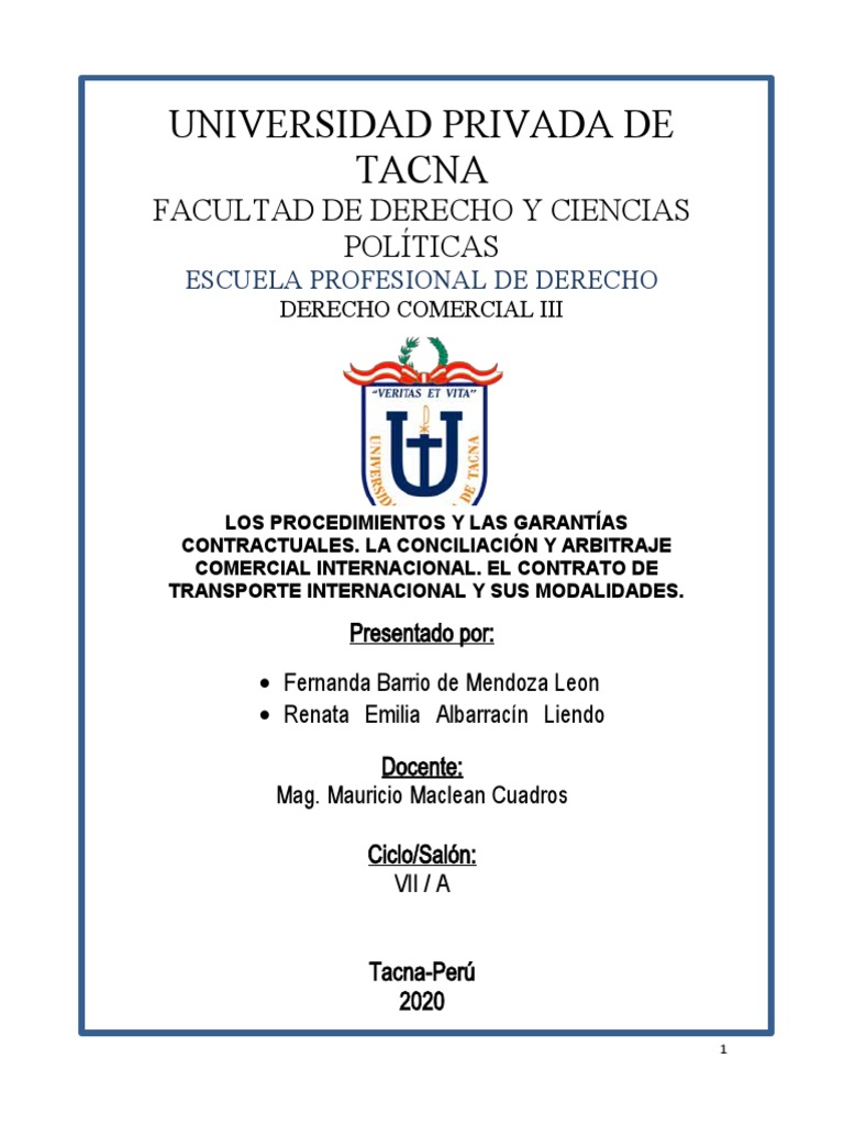 de solución como la conciliación y el arbitraje, y el contrato de transporte.