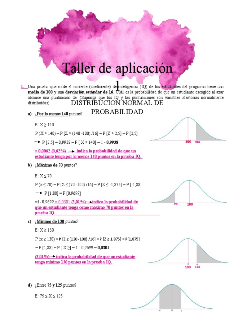 1. Una prueba que mide el cociente (coeficiente) de inteligencia (IQ) de los estudiantes del programa tiene una