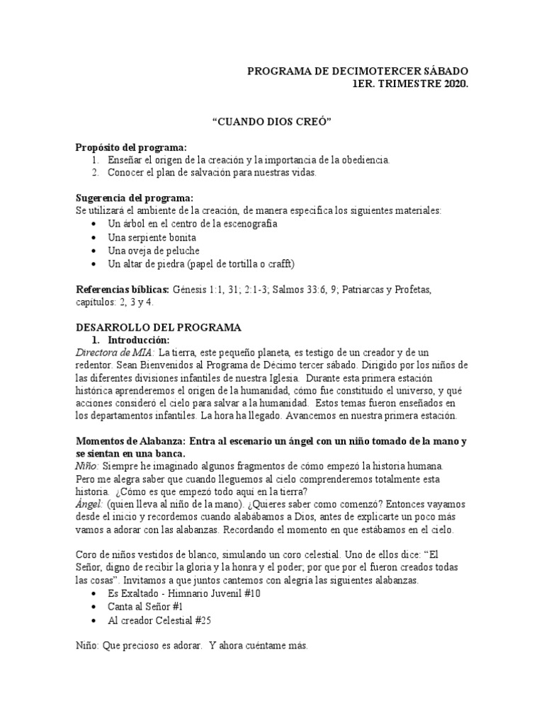 cantar el canto titulado “DIOS HIZO” representar cada parte del canto, vistiendo a