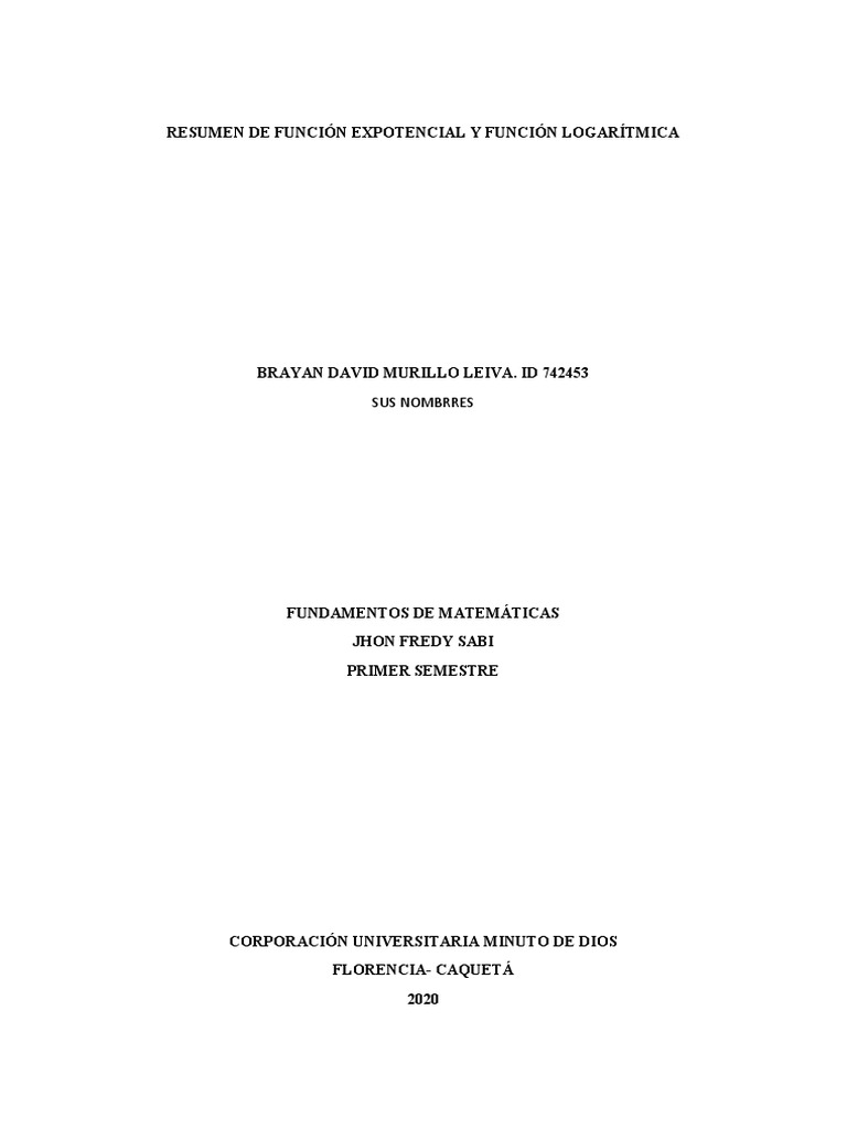 RESUMEN DE FUNCIÓN EXPOTENCIAL Y FUNCIÓN LOGARÍTMICA