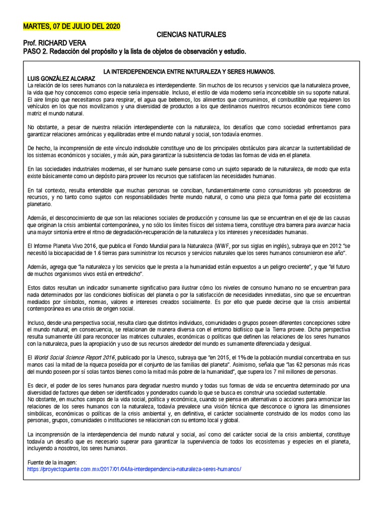 LA INTERDEPENDENCIA ENTRE NATURALEZA Y SERES HUMANOS.