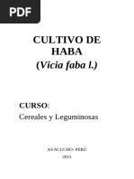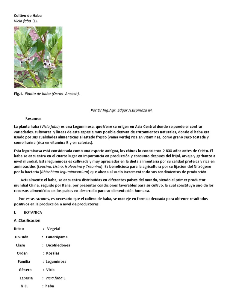 La planta haba (Vicia faba) es una Leguminosa, que tiene su origen en Asia Central donde se puede encontrar
