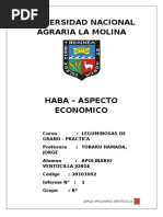 haba se encuentra en el cuarto lugar en importancia en producción y consumo después del frijol, arveja y garbanzo a