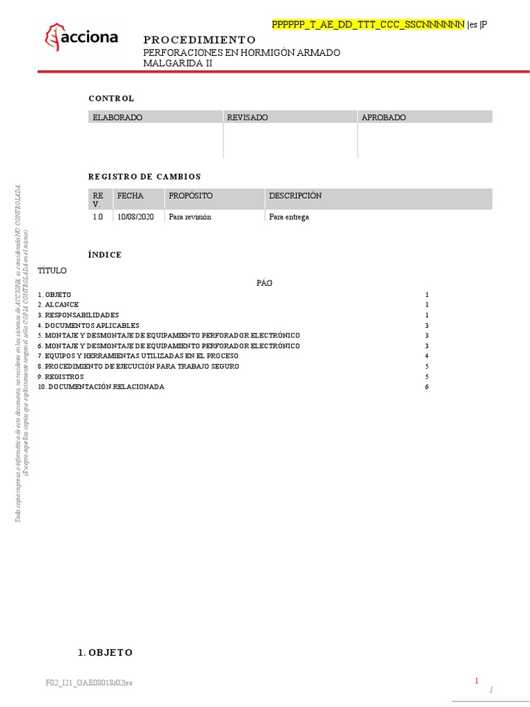Toda copia impresa o informática de este documento, no residente en los sistemas de ACCIONA, es considerada NO CONTROLADA.