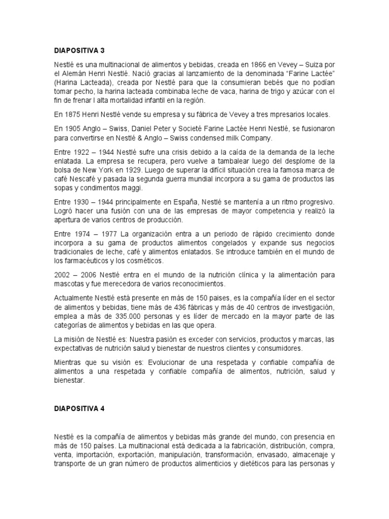Nestlé es una multinacional de alimentos y bebidas, creada en 1866 en Vevey – Suiza por