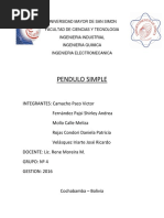 armónico simple y la energía del péndulo simple. Este laboratorio da a conocer el
