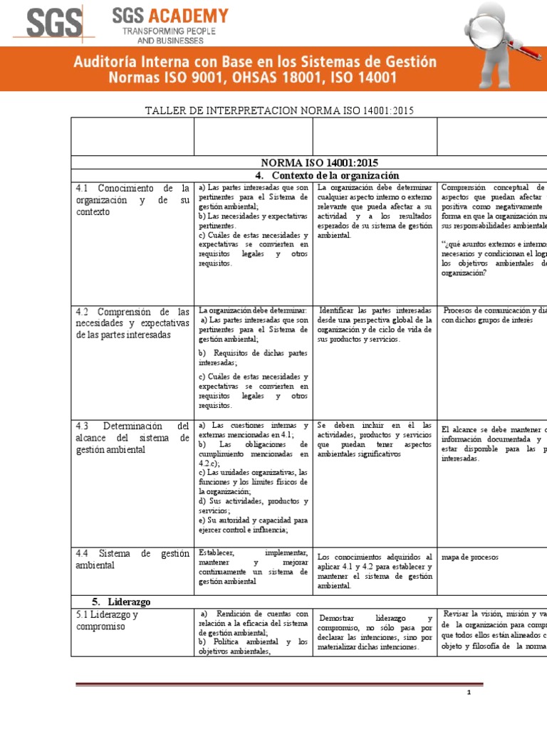 TALLER DE INTERPRETACION NORMA ISO 14001:2015