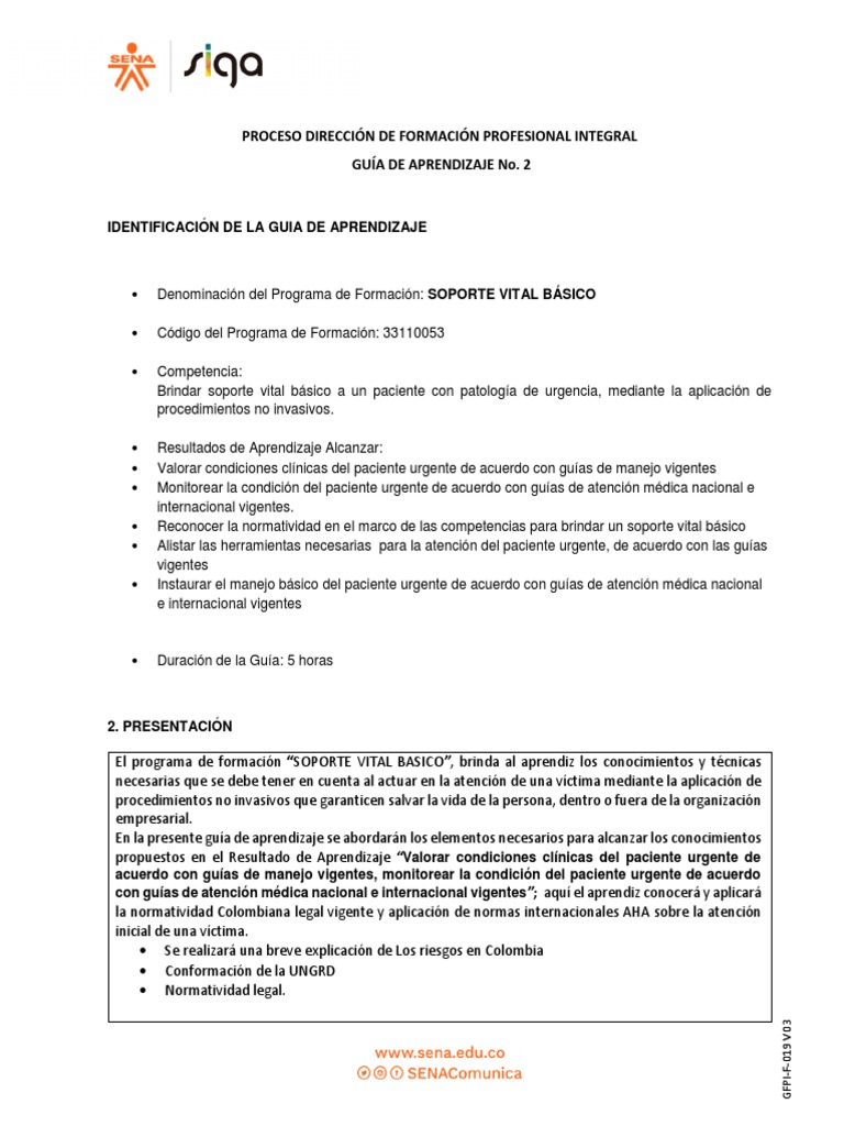 El programa de formación “SOPORTE VITAL BASICO”, brinda al aprendiz los conocimientos y técnicas