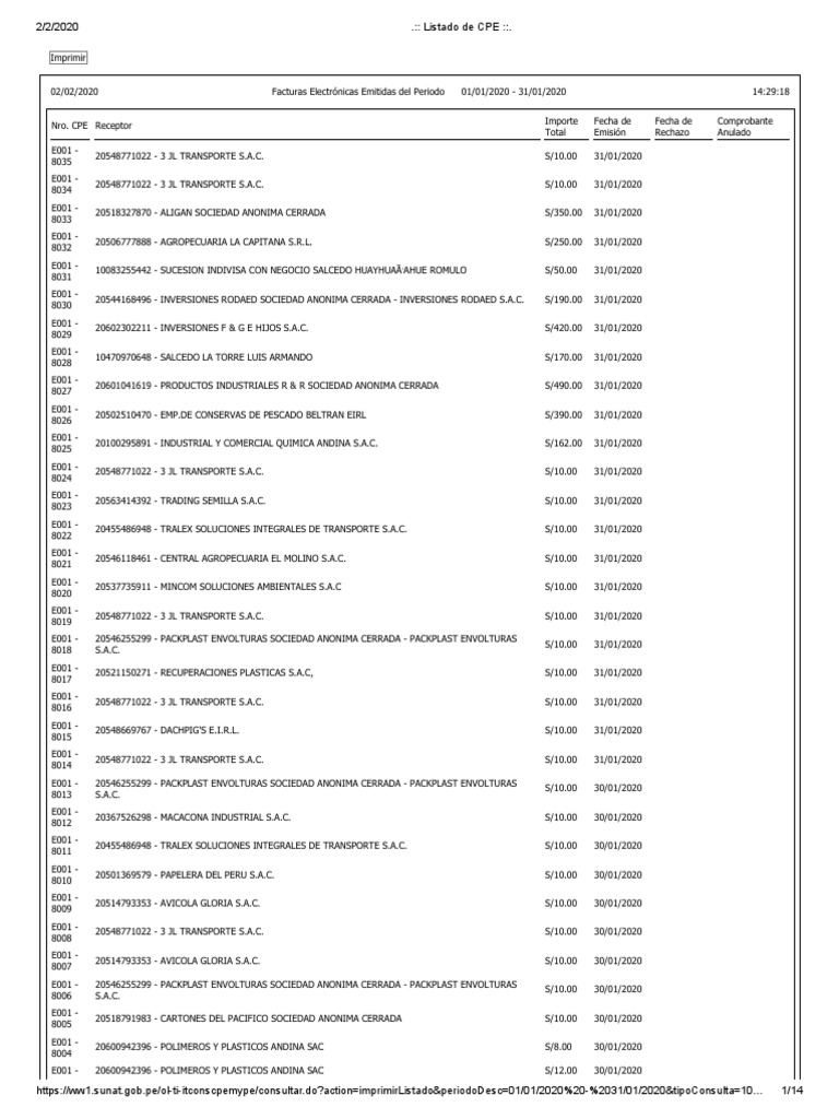 https://ww1.sunat.gob.pe/ol-ti-itconscpemype/consultar.do?action=imprimirListado&periodoDesc=01/01/2020%20-%2031/01/2020&tipoConsulta=10… 1/14