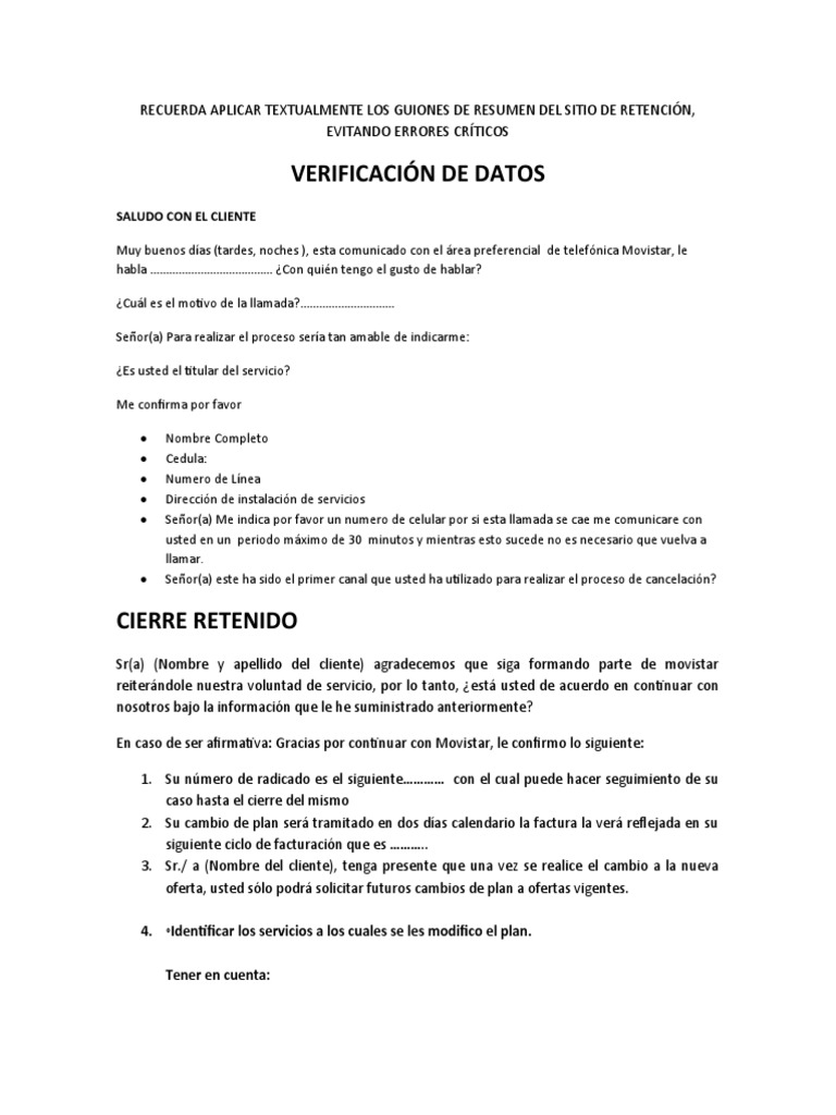 RECUERDA APLICAR TEXTUALMENTE LOS GUIONES DE RESUMEN DEL SITIO DE RETENCIÓN,