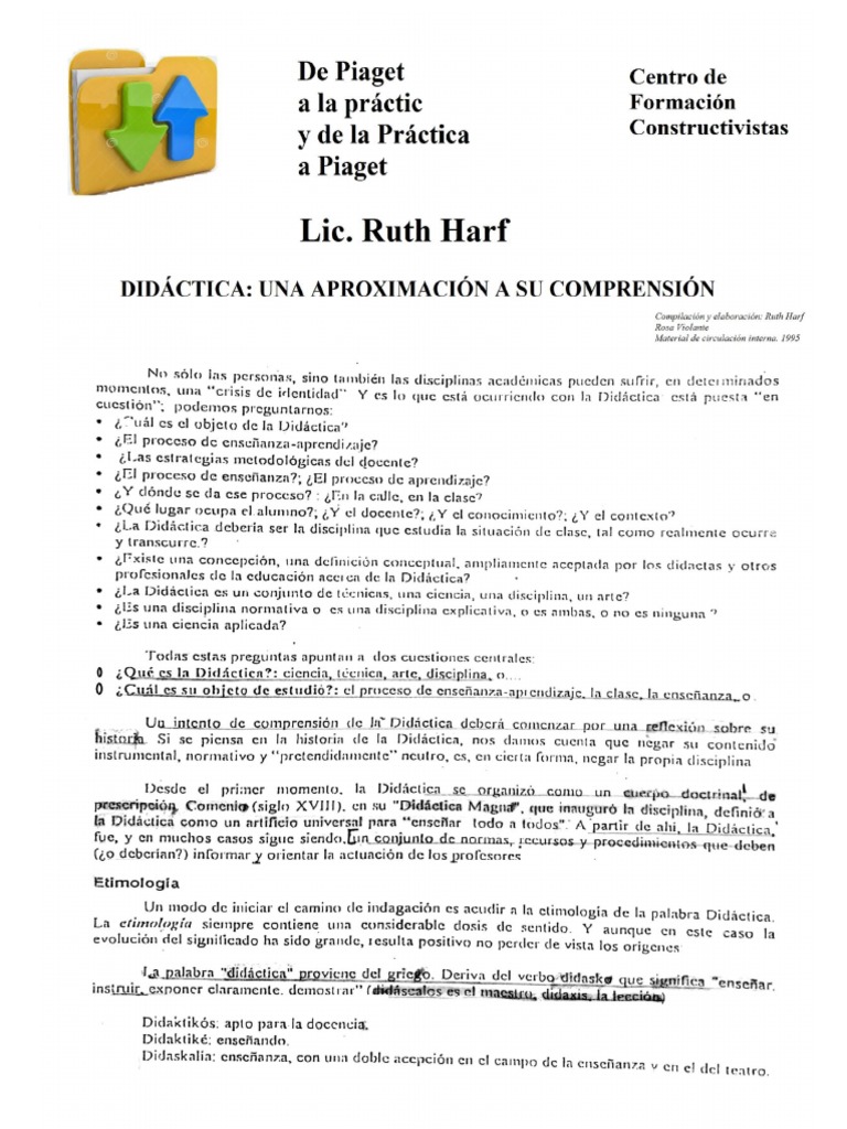 Dice Daniel Feldman que la didáctica se ocupa de las prácticas institucionales y sistemática de enseñanza. objetos del estudio
