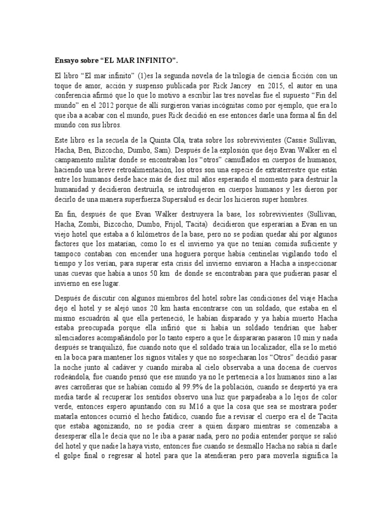 Este libro es la secuela de la Quinta Ola, trata sobre los sobrevivientes (Cassie Sullivan,