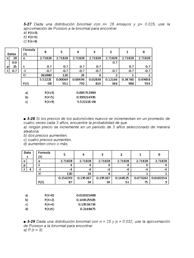 ■ 5-29 Dada una distribución binomial con n = 25 y p = 0.032, use la aproximación