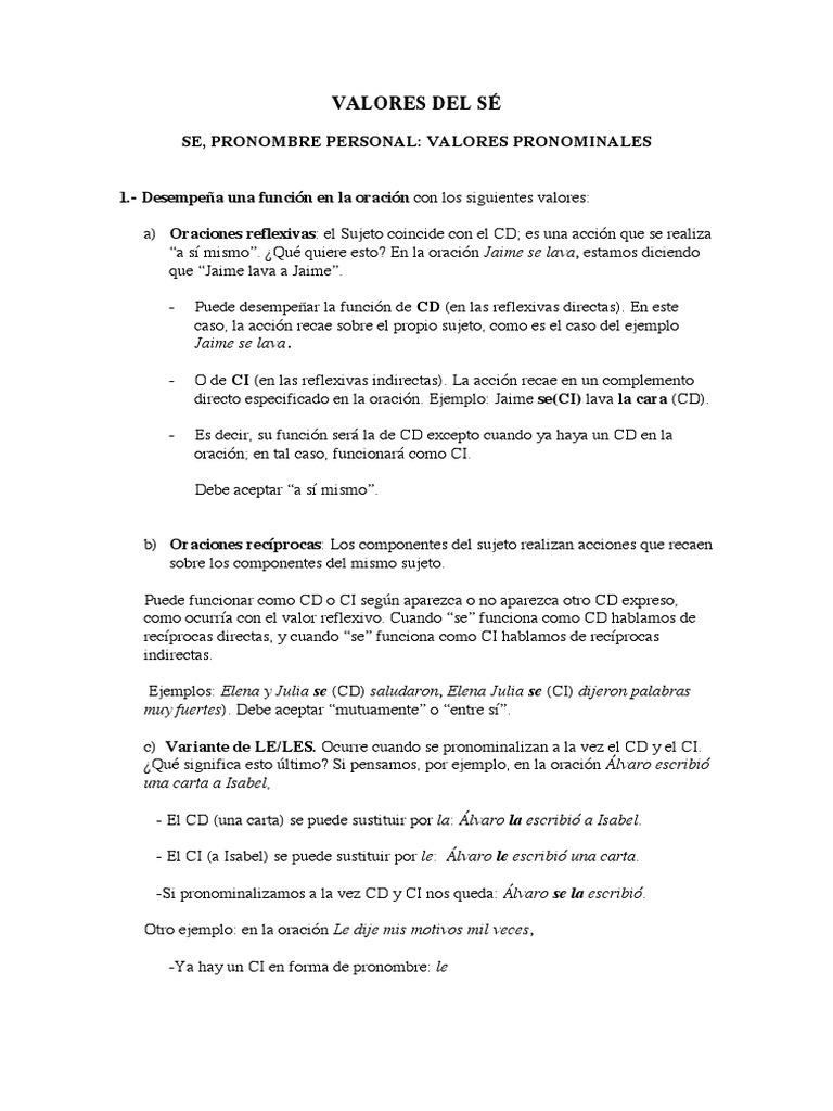 SE, PRONOMBRE PERSONAL: VALORES PRONOMINALES