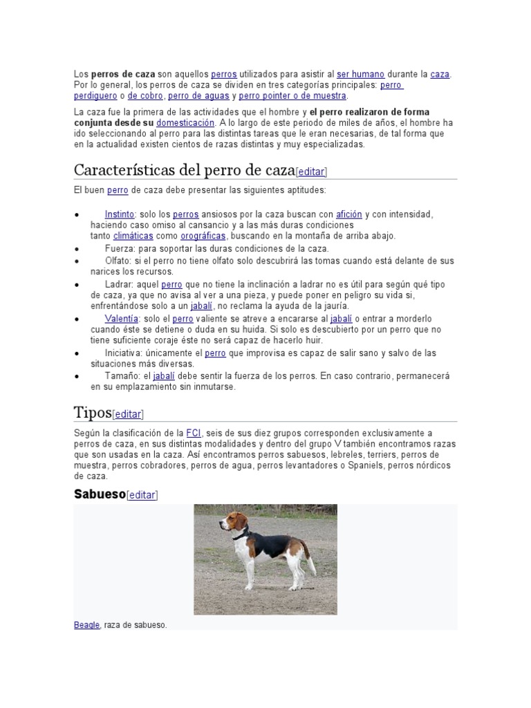 Características del perro de caza[editar]