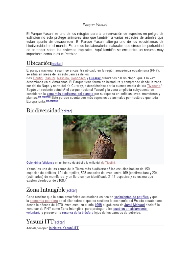 estan apunto de desaparecer. El Parque Yasuní alberga uno de los ecosistemas de