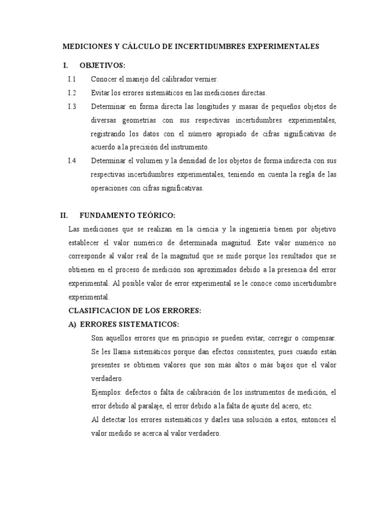 MEDICIONES Y CÁLCULO DE INCERTIDUMBRES EXPERIMENTALES