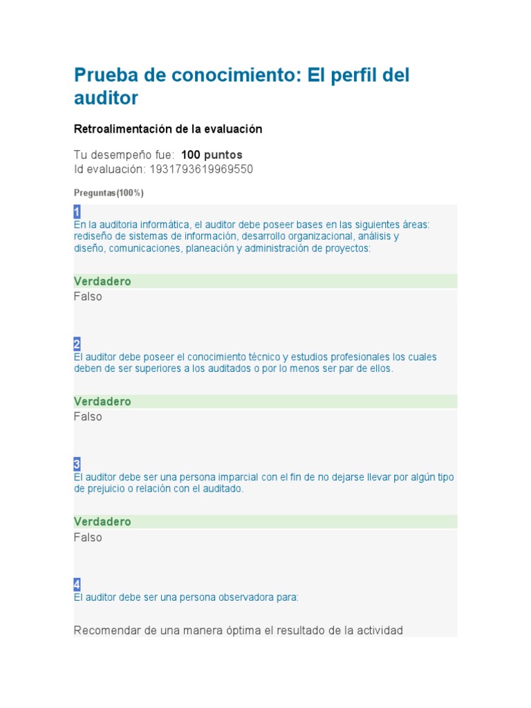 Prueba de conocimiento: El perfil del