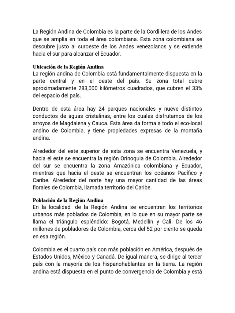 La Región Andina de Colombia es la parte de la Cordillera de los Andes