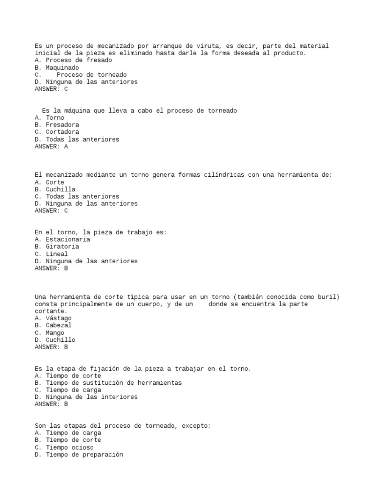 Las etapas del proceso de torneado son: Tiempo de descarga/carga, de corte, ocioso