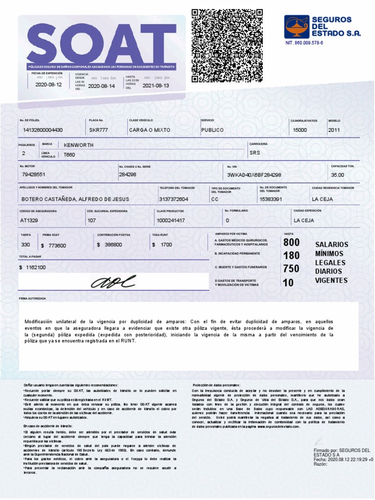 •Recuerde validar que su póliza está registrada en el RUNT. Seguros del Estado S.A. y Seguros de Vida del Estado S.A., para que mis datos sean