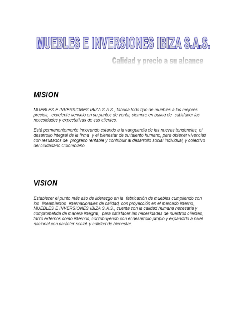 MUEBLES E INVERSIONES IBIZA S.A.S., fabrica todo tipo de muebles a los mejores