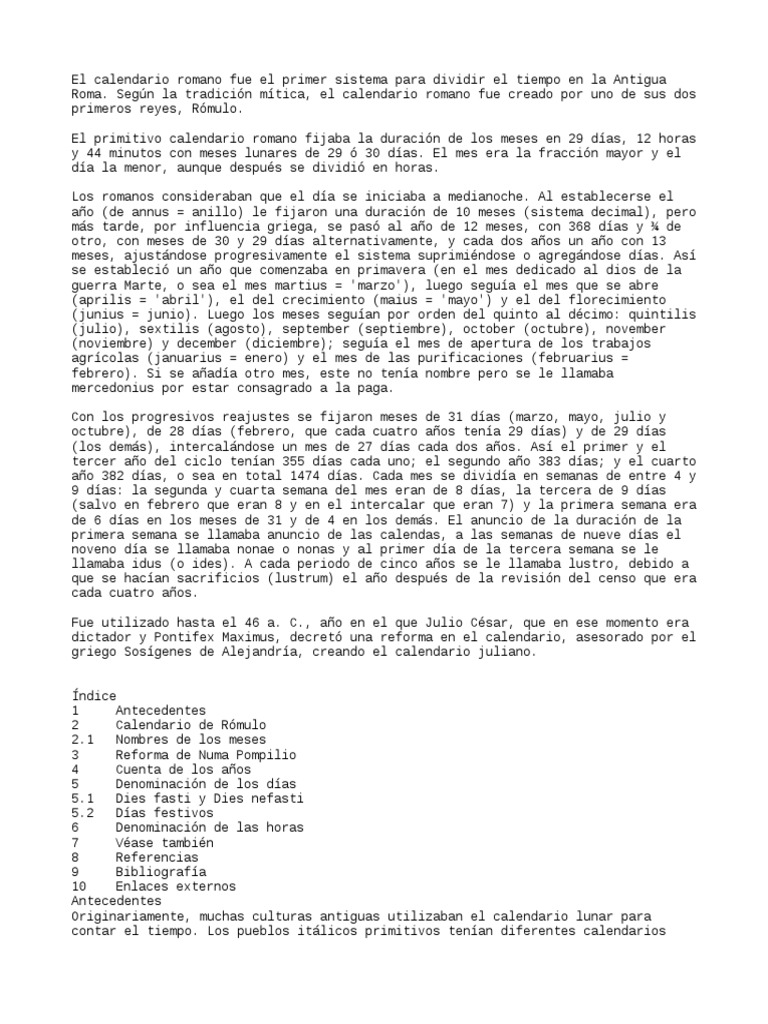 mítico fundador de Roma. Comprendía diez meses lunares. Entre el fin del último mes