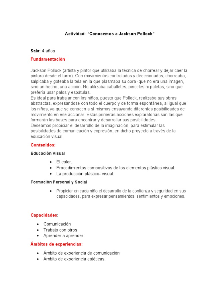 Es ideal para trabajar con los niños, puesto que Pollock, realizaba sus obras