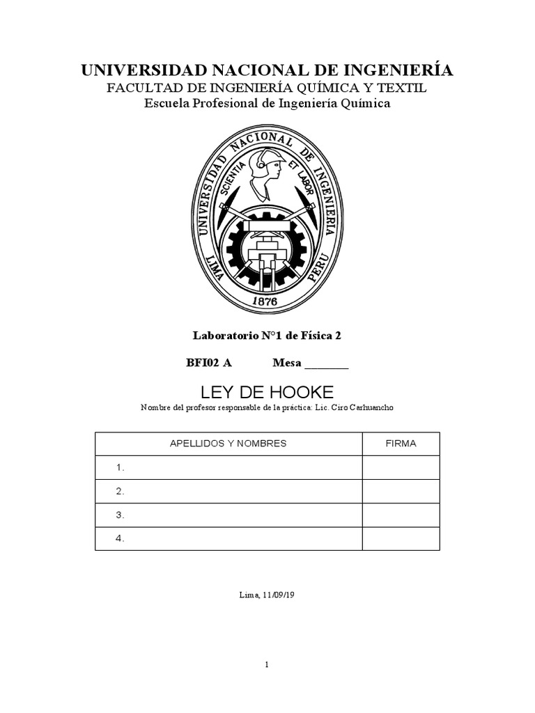 1. OBJETIVO: Hallar experimentalmente la relación entre el esfuerzo aplicado y la