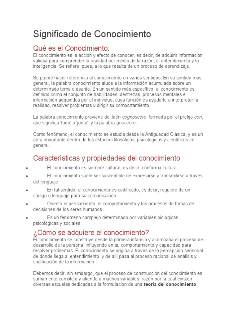 determinado tema o asunto. En un sentido más específico, el conocimiento es