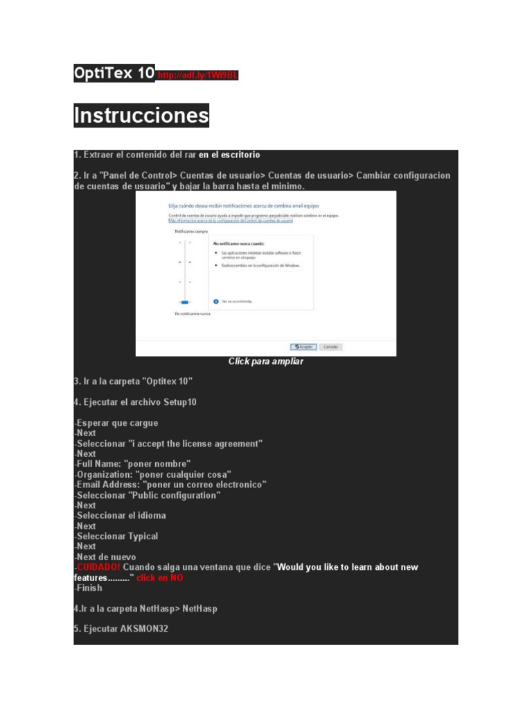 - Escribir cd users\usuario\desktop\optitex 10\nethasp\nethasp