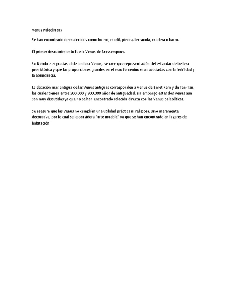 La datación mas antigua de las Venus antiguas corresponden a Venus de Beret Ram y de Tan-Tan,