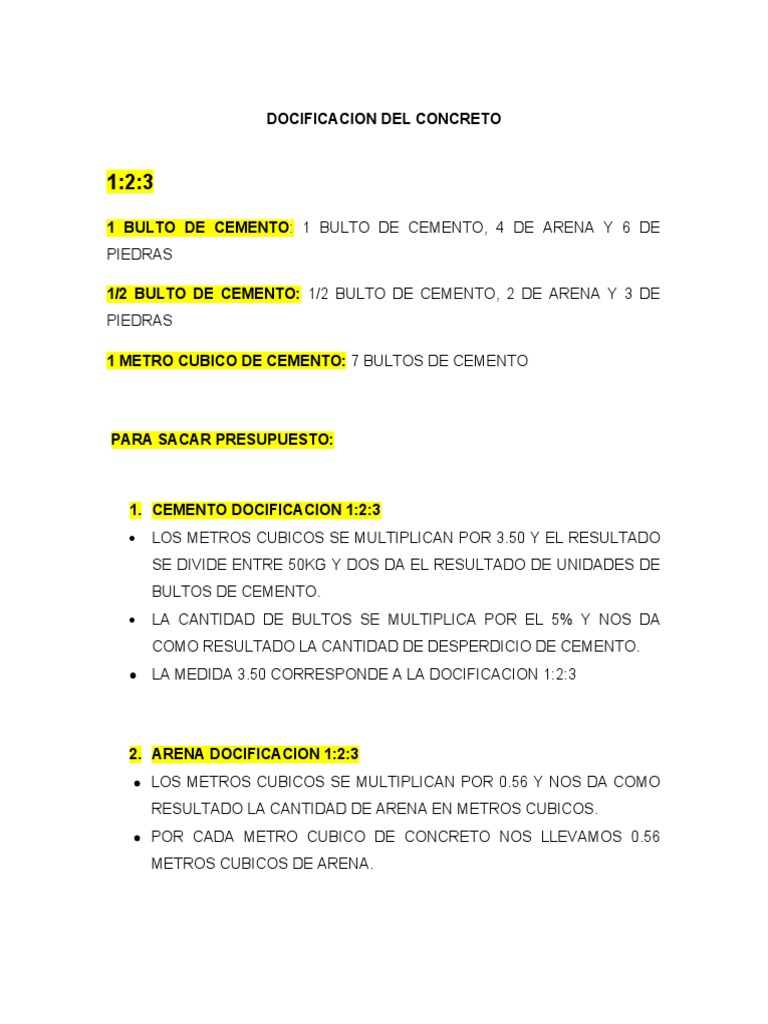 1. CEMENTO DOCIFICACION 1:2:3