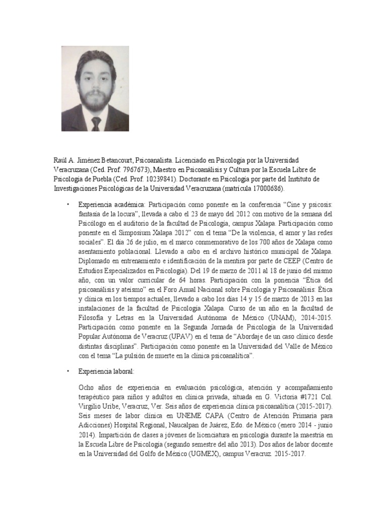 Psicología de Puebla (Ced. Prof. 10239841). Doctorante en Psicología por parte del Instituto de