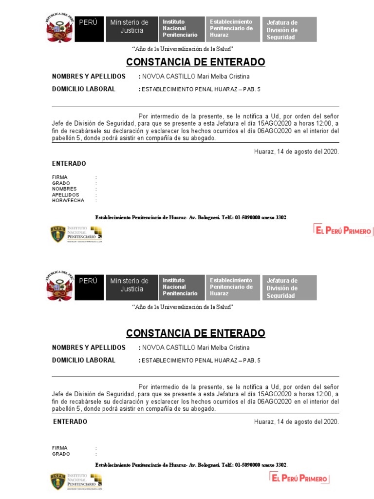 ENTERADO Huaraz, 14 de agosto del 2020.