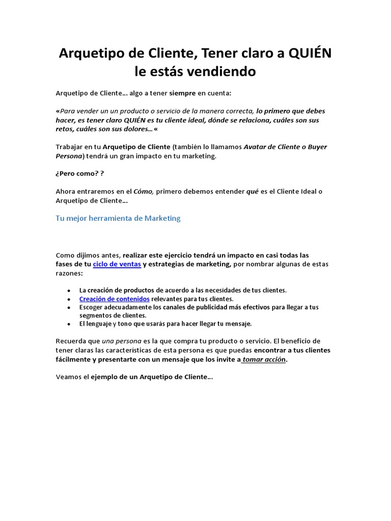 Veamos el ejemplo de un Arquetipo de Cliente…