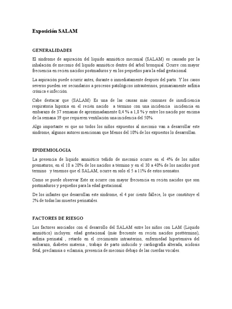 termino y tenemos que el SALAM, ocurre en solo el 5 a 11% de estos neonatos.