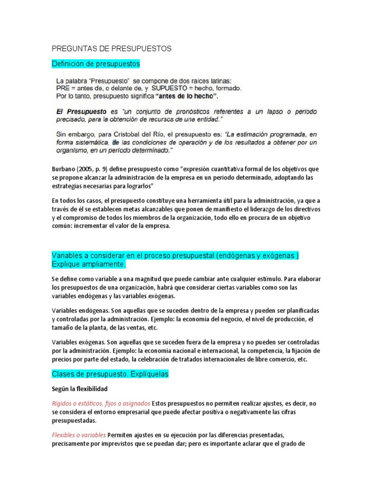 PREGUNTAS DE PRESUPUESTOS