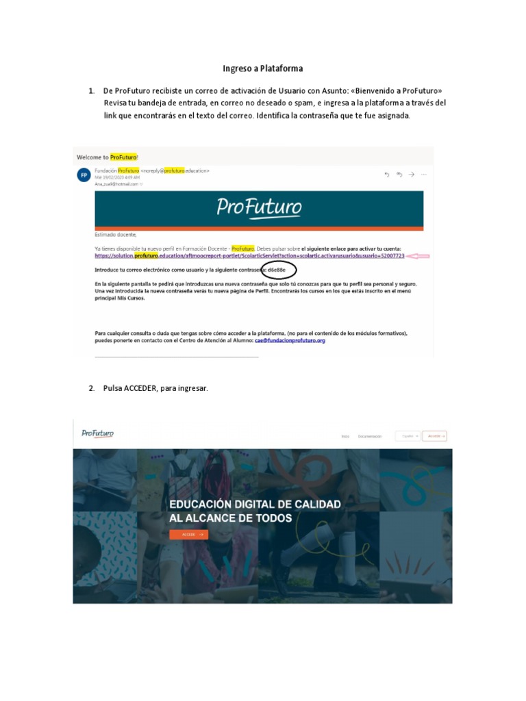 1. De ProFuturo recibiste un correo de activación de Usuario con Asunto: «Bienvenido a ProFuturo»