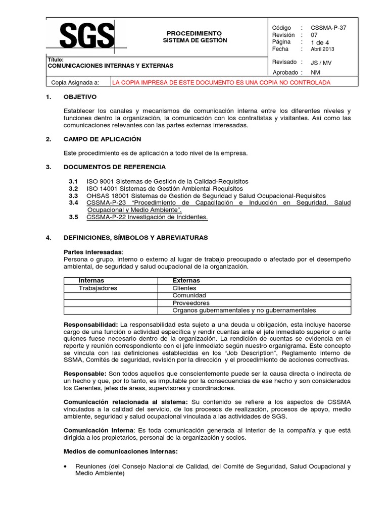 difusión del área de CSSMA, al correo pe.CSSMAcomunica@sgs.com.