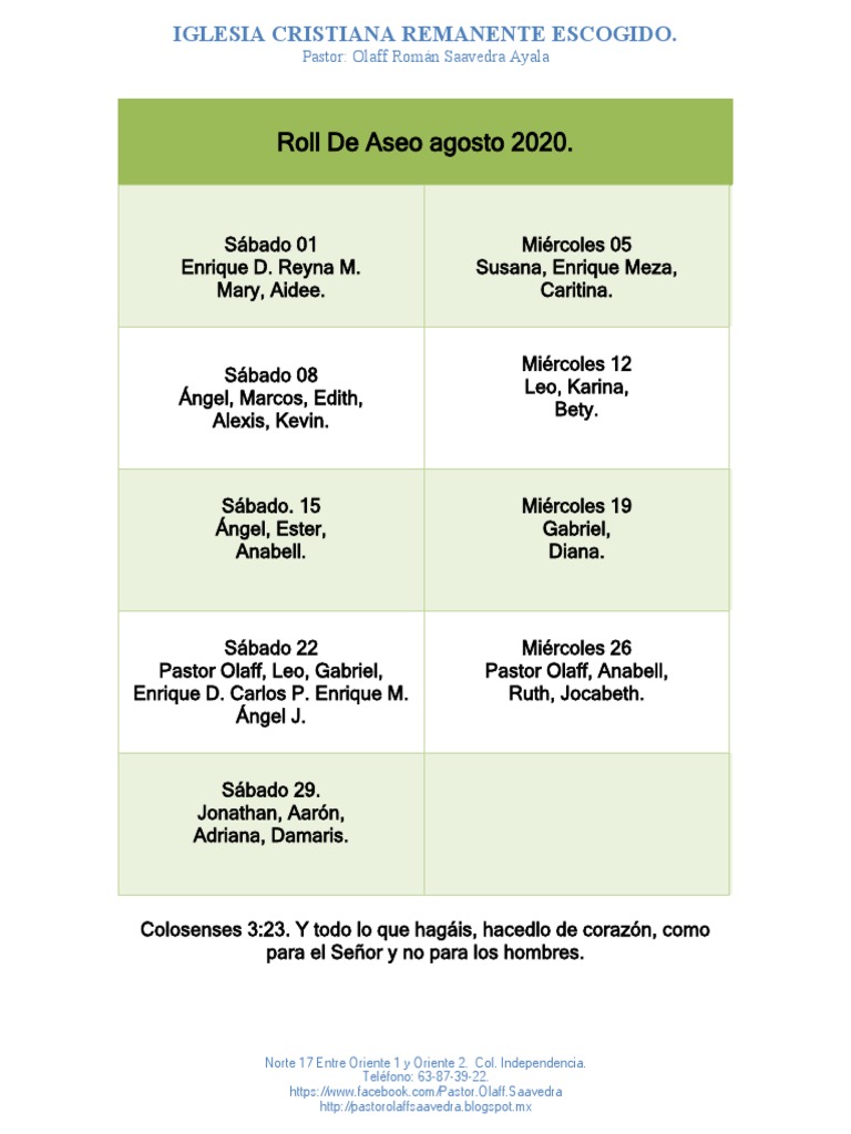 Roll De Aseo agosto 2020.