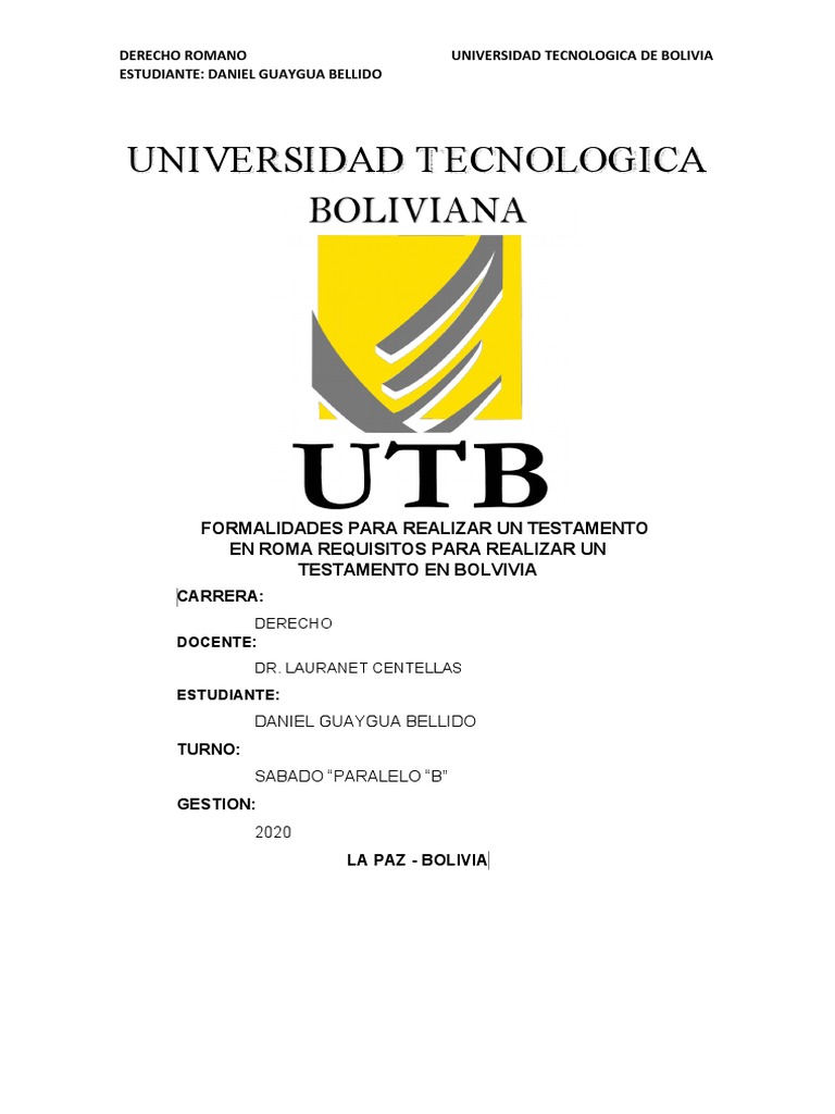 DERECHO ROMANO UNIVERSIDAD TECNOLOGICA DE BOLIVIA