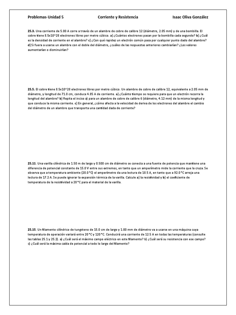 Problemas-Unidad 5 Corriente y Resistencia Isaac Oliva González